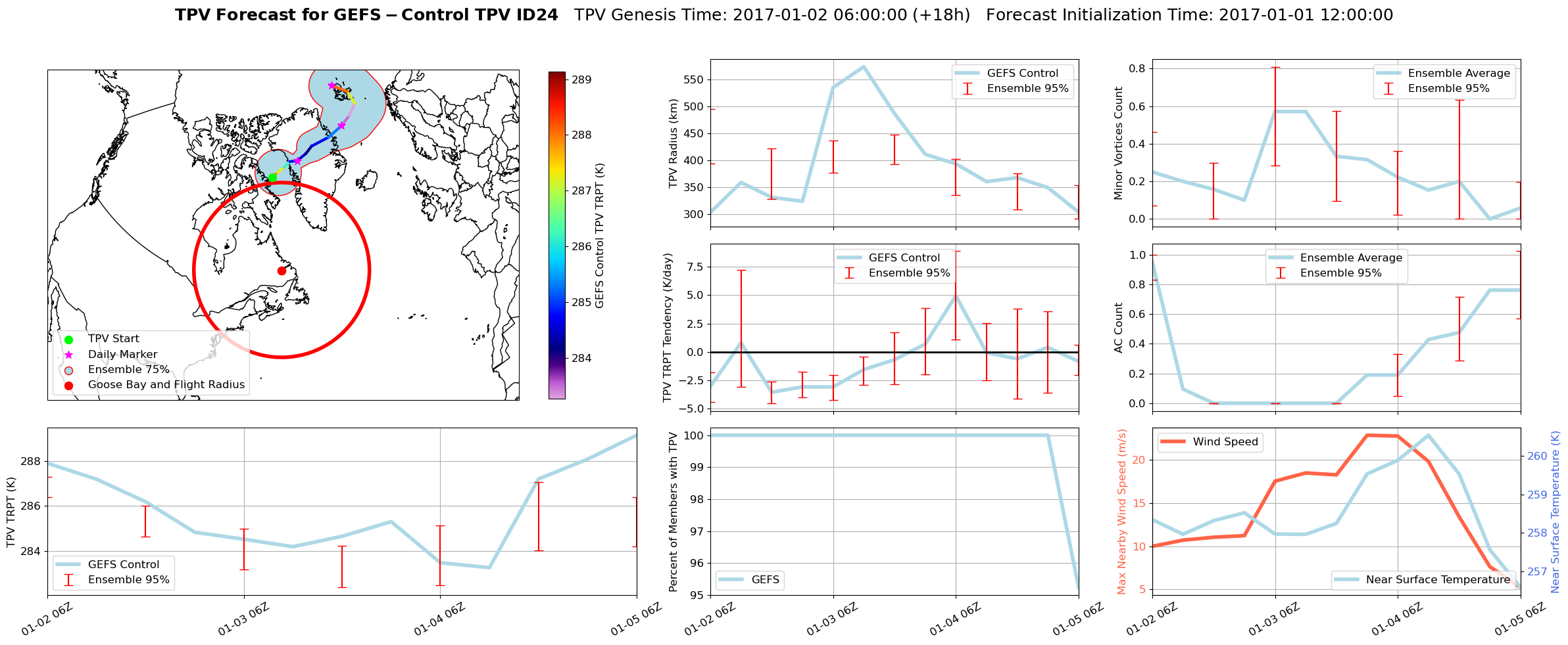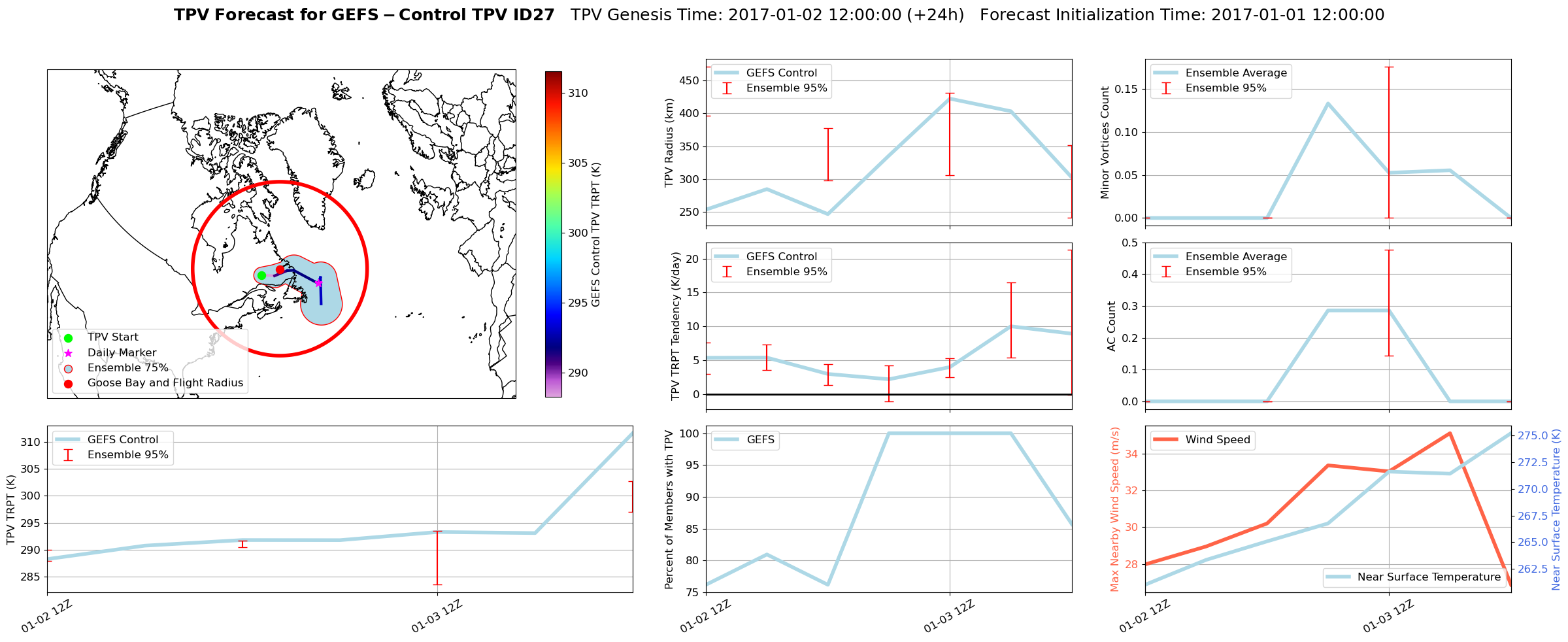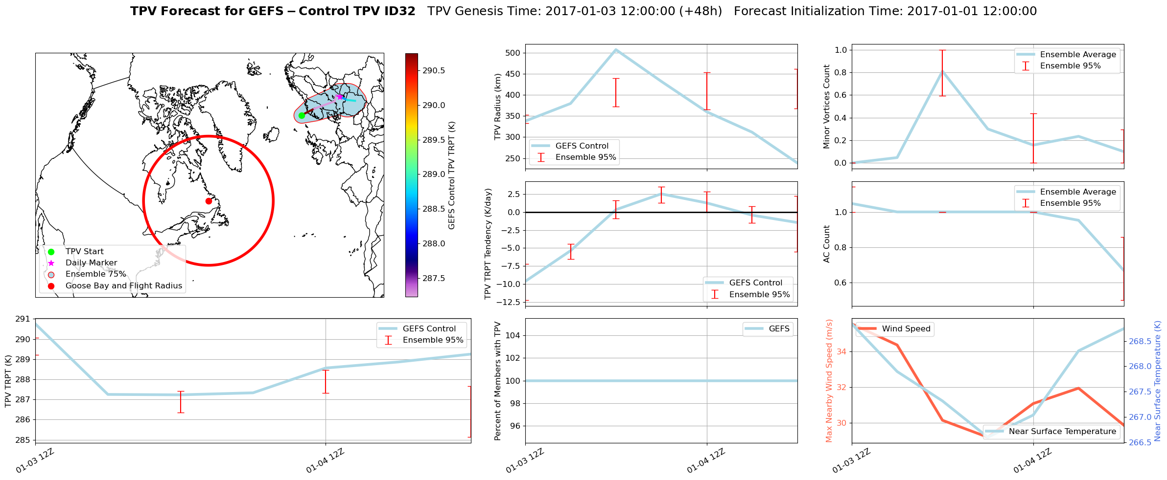 TPVs near Goose Bay within 2 days of Forecast Initialization:
