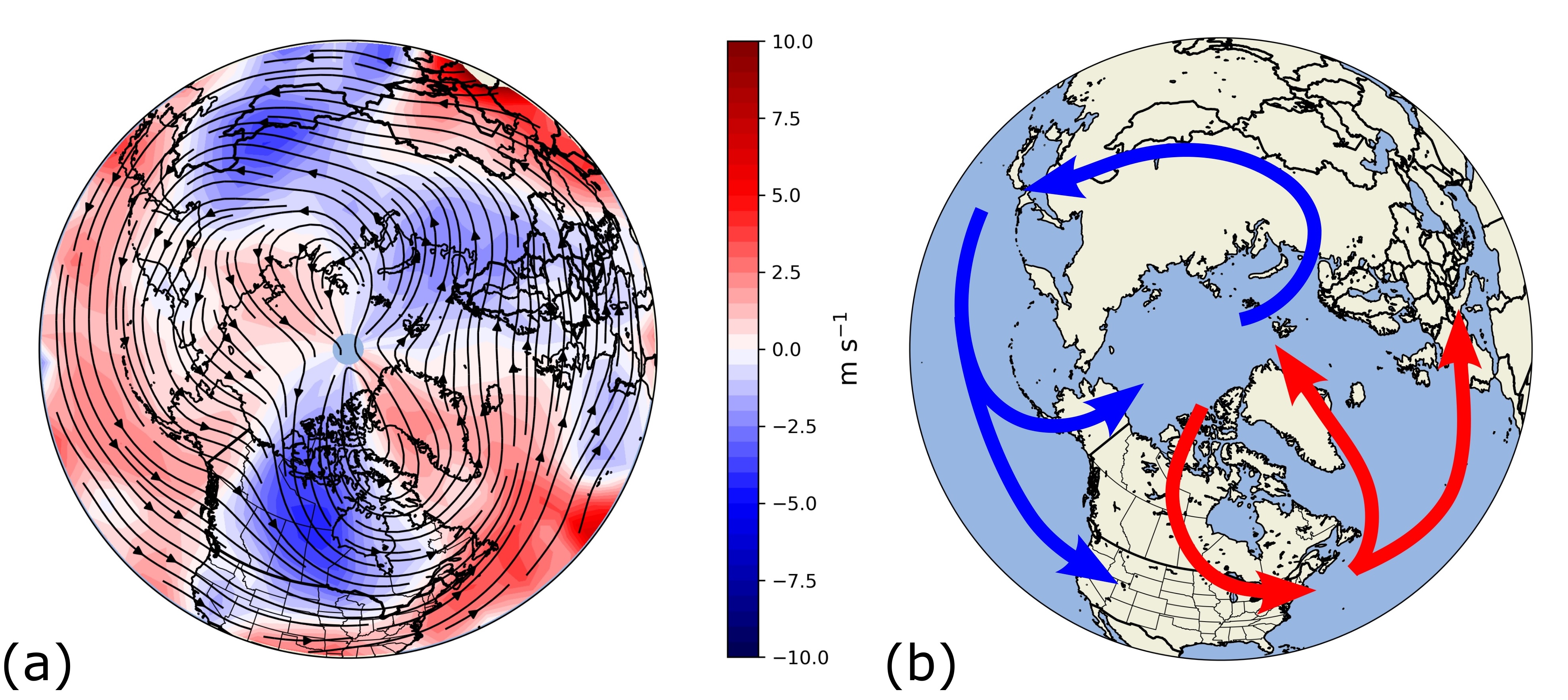 Tropopause polar vortices (TPVs) are coherent circulations, common throughout the polar regions, that are centered on the tropopause but extend throughout the upper troposphere and lower stratosphere (UTLS) region. Spatially, TPVs fall into the mesoscale, with radii generally on the order of hundreds of kilometers. Temporally, though, TPVs are distinctly synoptic to sub-seasonal, often persisting for weeks or even months. During these long lifetimes, TPVs can interact with a variety of other atmospheric phenomena, including surface cyclones and jet streams. Moreover, long-lived TPVs commonly enter the midlatitudes, where they have been linked with spurring severe weather events (see the TPVs and Severe Weather page) and cold air outbreaks.